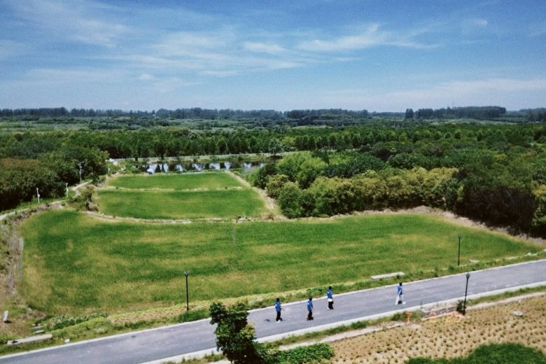 圖為實(shí)踐團(tuán)航拍記錄小井村的稻田陸藝之供圖