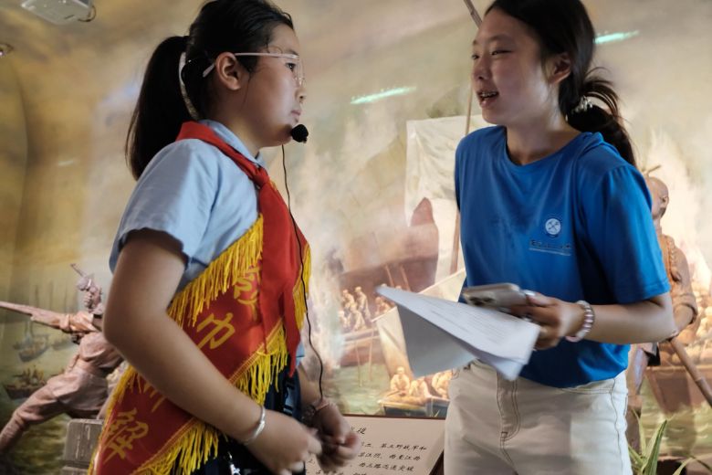 圖為實(shí)踐團(tuán)成員采訪小志愿講解員王雨桐陸藝之供圖