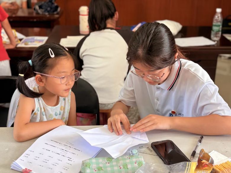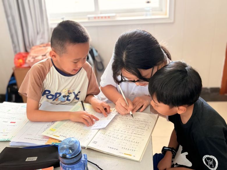 上午,志愿者們化身“小老師”,耐心陪伴孩子們完成作業(yè)。面對孩子們提出的數(shù)學難題、語文生字等疑問,志愿者們逐一細致解答,用生動的例子幫助他們理解知識點,鼓勵他們主動思考,營造出專注又輕松的學習氛圍。