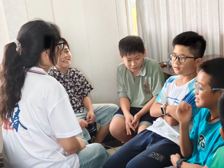 圖為團隊成員與小朋友們一起做游戲 廖榮靜攝