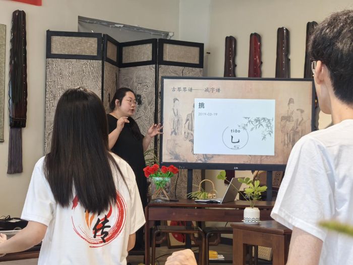 圖為于涵老師正在向薪傳社會實踐隊隊員們介紹此次的古琴指導(dǎo)老師。孔令雯 攝
