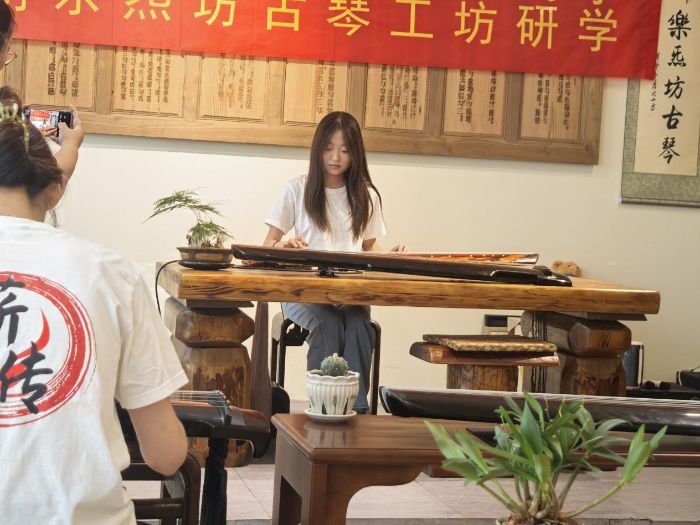 大學(xué)生網(wǎng)報青島7月12日電(通訊員 孔令雯)為深入挖掘非物質(zhì)文化遺產(chǎn)的當(dāng)代價值,推動中華優(yōu)秀傳統(tǒng)文化的傳承與創(chuàng)新,7月12日煙臺理工學(xué)院薪傳社會實踐隊一行人赴青島即墨區(qū)開展以古琴文化為主題的暑期“三下鄉(xiāng)”社會實踐活動。實踐隊通過走訪非遺傳承人、參觀古琴工坊、開展文化體驗課堂等形式,近距離感受古琴藝術(shù)的獨特魅力,探索非遺在新時代的傳承路徑。此次實踐活動不僅讓隊員們深入接觸古琴文化,更增強了當(dāng)代大學(xué)生傳承非遺的責(zé)任感與使命感。薪傳實踐隊將持續(xù)讓更多人了解古琴藝術(shù),為非遺傳承注入青春力量。