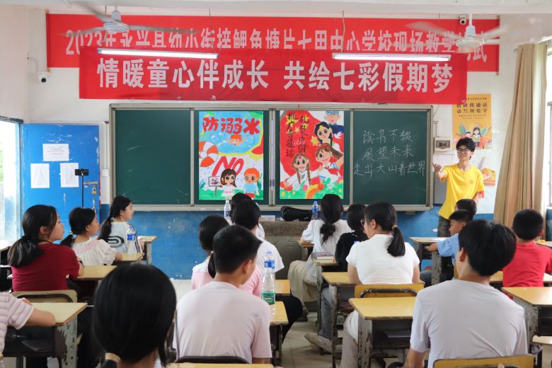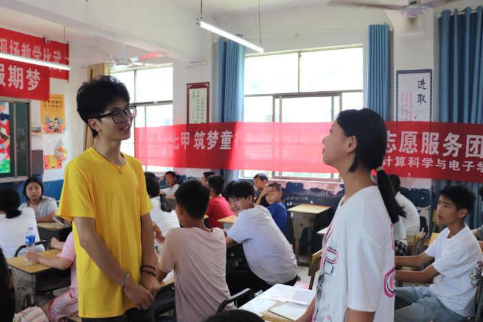 為引導(dǎo)鄉(xiāng)村留守兒童樹(shù)立遠(yuǎn)大理想,激發(fā)學(xué)習(xí)動(dòng)力,湖南工程學(xué)院“星耀七甲·筑夢(mèng)童行”關(guān)愛(ài)留守兒童志愿服務(wù)團(tuán)隊(duì)的20名師生懷著對(duì)鄉(xiāng)村教育的熱忱與期待,奔赴郴州市永興縣七甲鄉(xiāng)這片熱土,開(kāi)啟為期八天的三下鄉(xiāng)社會(huì)實(shí)踐活動(dòng)。7月10日上午,志愿者為當(dāng)?shù)?0余名孩子們帶來(lái)了一堂生動(dòng)而深刻的勵(lì)志教育課,用青春話語(yǔ)點(diǎn)亮鄉(xiāng)村孩童的夢(mèng)想之光,讓“走出大山見(jiàn)世界”的種子在孩子們心中生根發(fā)芽。