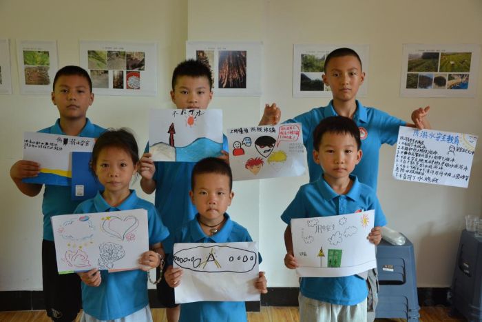 圖為孩子們與手抄報(bào)的合影 陳玲攝