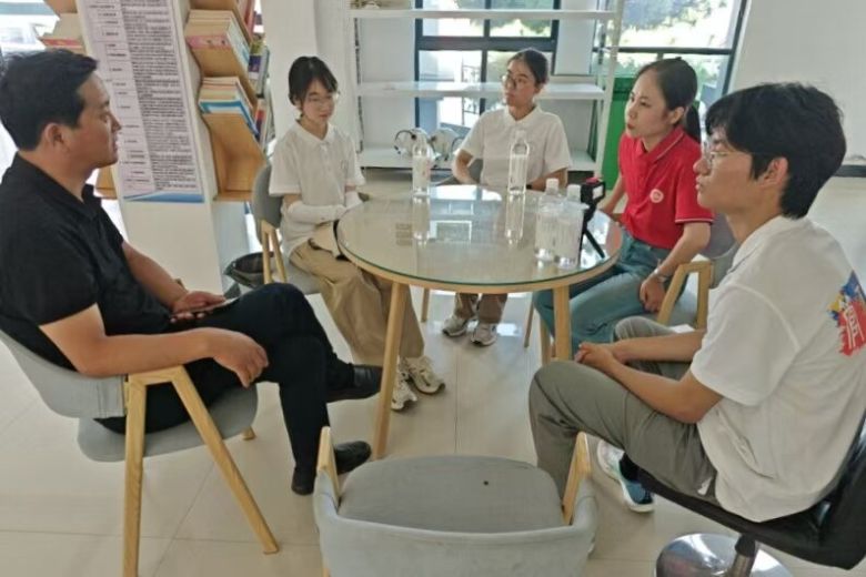 圖為實(shí)踐隊(duì)員采訪界山村黨總支書記。葉昌坤 供圖