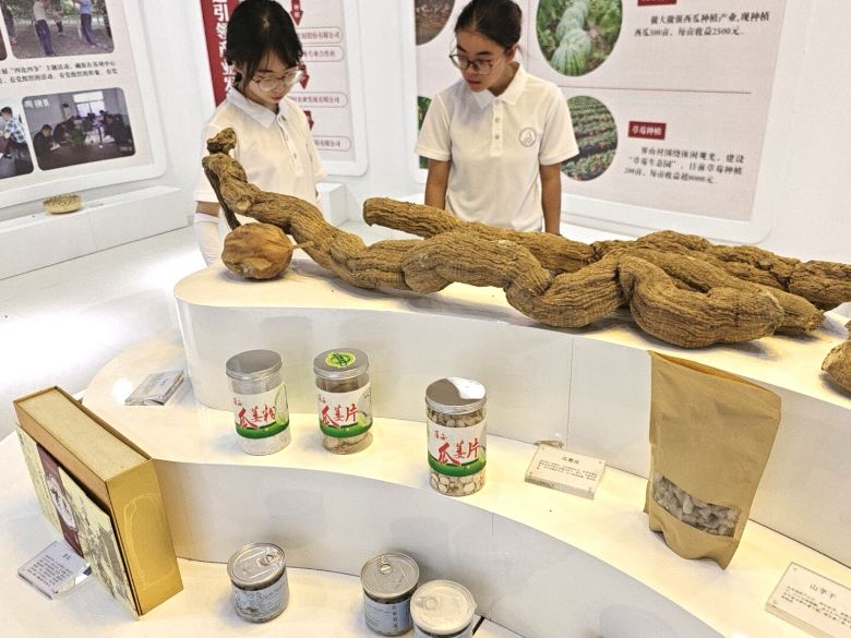 圖為實(shí)踐隊(duì)員參觀瓜蔞產(chǎn)品。