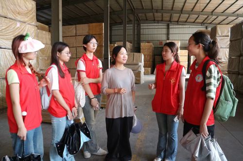 (圖二:隊(duì)員們調(diào)研佰龍竹業(yè)生產(chǎn)車間)