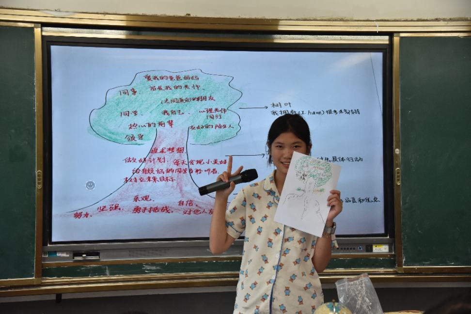 圖為劉梓婷同學(xué)自信展示自己的生命成長(zhǎng)樹 鄧佳豪 供圖