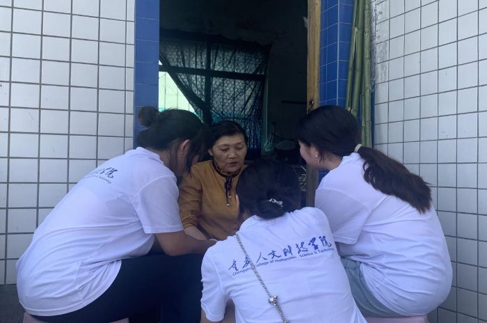 (圖為實踐團(tuán)成員對本地人進(jìn)行交談并助農(nóng) 胡晨曦供圖)