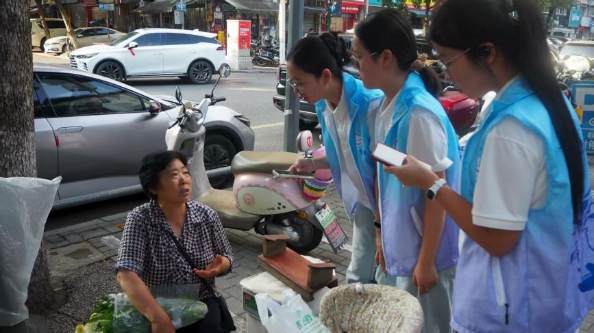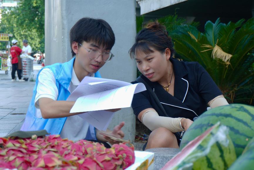圖為實(shí)踐團(tuán)成員在文龍街道進(jìn)行問卷采訪 蕭佳欣攝