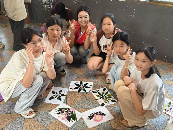 圖為實(shí)踐團(tuán)成員協(xié)助山棗中學(xué)學(xué)生們完成生命曼陀羅創(chuàng)作。陳喆攝