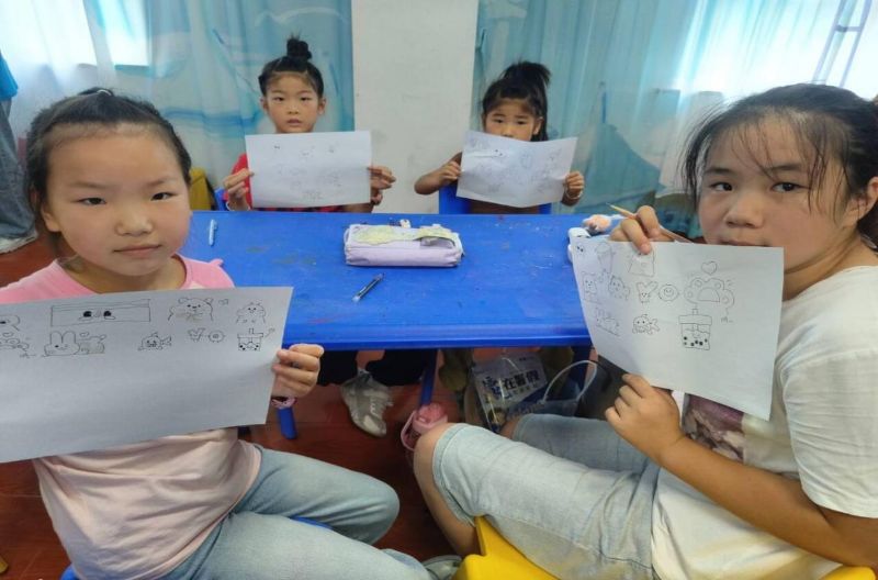 藝術(shù)的種子也在社區(qū)悄然發(fā)芽。在“童心繪世界”繪畫活動中,孩子們拿起五彩畫筆,描繪心中的美好世界。有的畫可愛的卡通人物,有的畫自己想象中的東西。活動現(xiàn)場,志愿者耐心指導(dǎo),鼓勵孩子們大膽創(chuàng)作。當(dāng)一幅幅充滿童真與創(chuàng)意的作品完成時,孩子們臉上洋溢著自豪的笑容。隨后,老師將畫展在教室墻面,一幅幅充滿童真的畫作像綻放的花朵般次第鋪開,引得大家相互欣賞。