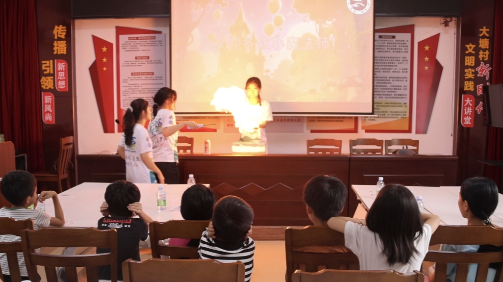 行動(dòng)中,突擊隊(duì)員們充分發(fā)揮專(zhuān)業(yè)所學(xué),精心設(shè)計(jì)了一系列安全、有趣的小型科學(xué)實(shí)驗(yàn),并反復(fù)驗(yàn)證確保可行性,為孩子們帶來(lái)了一場(chǎng)精彩紛呈的科學(xué)探索之旅。“流星雨”實(shí)驗(yàn)營(yíng)造夢(mèng)幻場(chǎng)景,引領(lǐng)孩子們仰望科學(xué)星空;大氣壓強(qiáng)演示展現(xiàn)“神力”,激發(fā)探索物理奧秘的熱情;“火焰掌”互動(dòng)烈焰騰空,引發(fā)陣陣驚嘆,更映照出隊(duì)員們投身支教、點(diǎn)燃科學(xué)夢(mèng)想的熾熱之心。