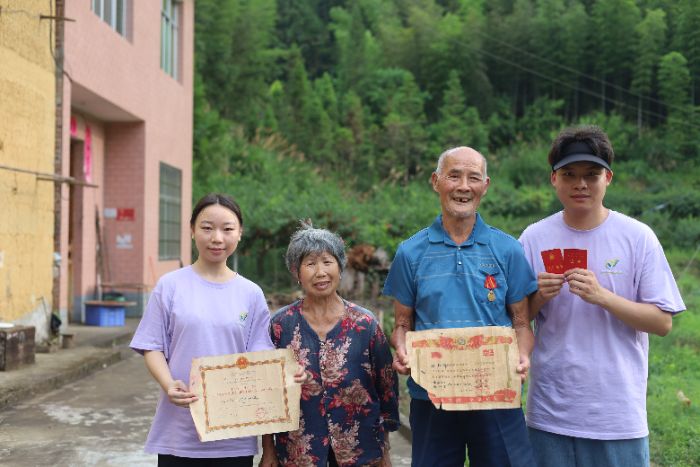 78歲的老黨員鄒房發(fā),這位有著53年黨齡的原村干部,曾帶領(lǐng)村民在374畝田地上辛勤耕耘三十載。85歲的孟憲金老人,是一位精通技術(shù)的能人,他曾為保障全村唯一碾米廠的運(yùn)轉(zhuǎn)日夜操勞,甚至因工傷導(dǎo)致腿部癱瘓。83歲的空降兵老兵孟普生向志愿者們講述了當(dāng)年從400米高空躍出熱氣球訓(xùn)練的驚險(xiǎn),以及執(zhí)行任務(wù)的經(jīng)歷。82歲的偵察兵老英雄張楊輝,撫摸著“五好戰(zhàn)士”“神槍手”證書(shū)和援越抗美勛章,回憶著戰(zhàn)場(chǎng)上的殘酷,那被炮彈震聾的耳朵,成為他永不褪色的軍功章。在容易被人遺忘的鄉(xiāng)間,文旅組“藝青年”用鏡頭記錄著參與新中國(guó)建設(shè)奮斗歷程的、平凡而又偉大的實(shí)踐者們。