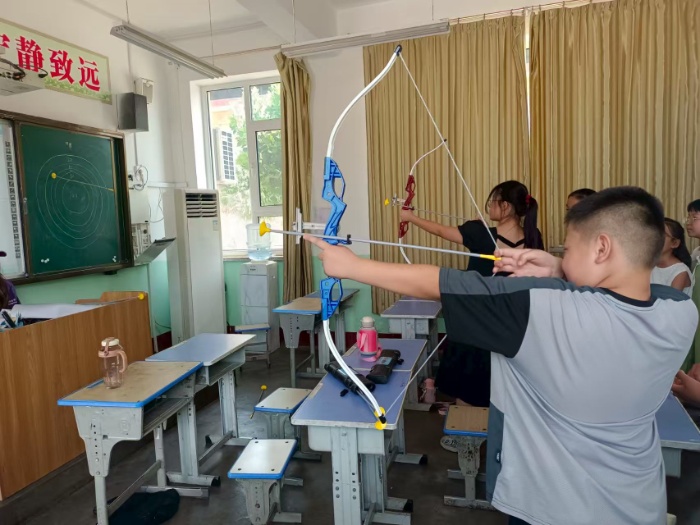 高年級(jí)的教室在李老師精心的布置下,搖身成為“張弓搭箭”的競(jìng)技場(chǎng),“小小神射手”實(shí)踐課始終彌漫著孩子們的飽滿活力與熱情好奇。
