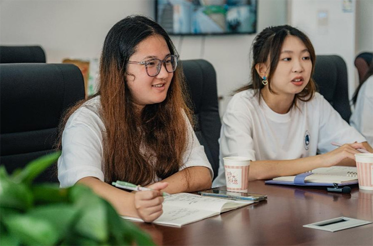 圖為成員聆聽周建平書記對石塔村的介紹 李欣宇 攝