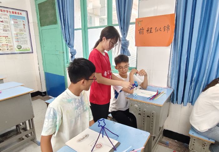 2025年7月14日,在湖南古丈縣民中的教室里,一根根毛茸茸的扭扭棒正在學(xué)生手中幻化成眼鏡、扇子與花環(huán)。湖南第一師范學(xué)院“數(shù)映紅途”鄉(xiāng)村振興促進(jìn)團(tuán)成員夏坤榮的《扭扭棒創(chuàng)意工坊》課上,沒有公式與習(xí)題,只有彩色絨線在指尖飛舞——這場看似簡單的手工課,實(shí)則是融合幾何思維、文化傳承與情感教育的創(chuàng)新實(shí)驗(yàn)。