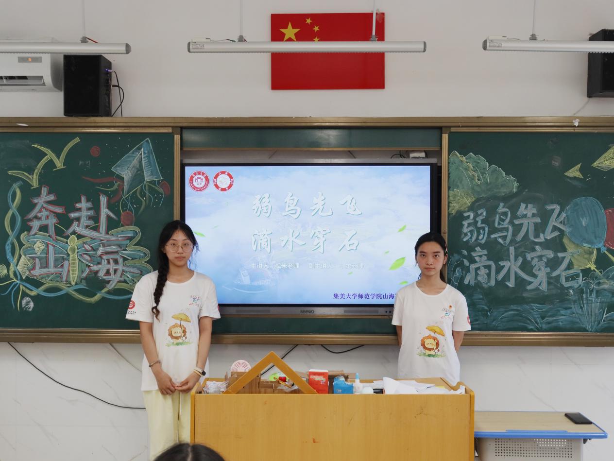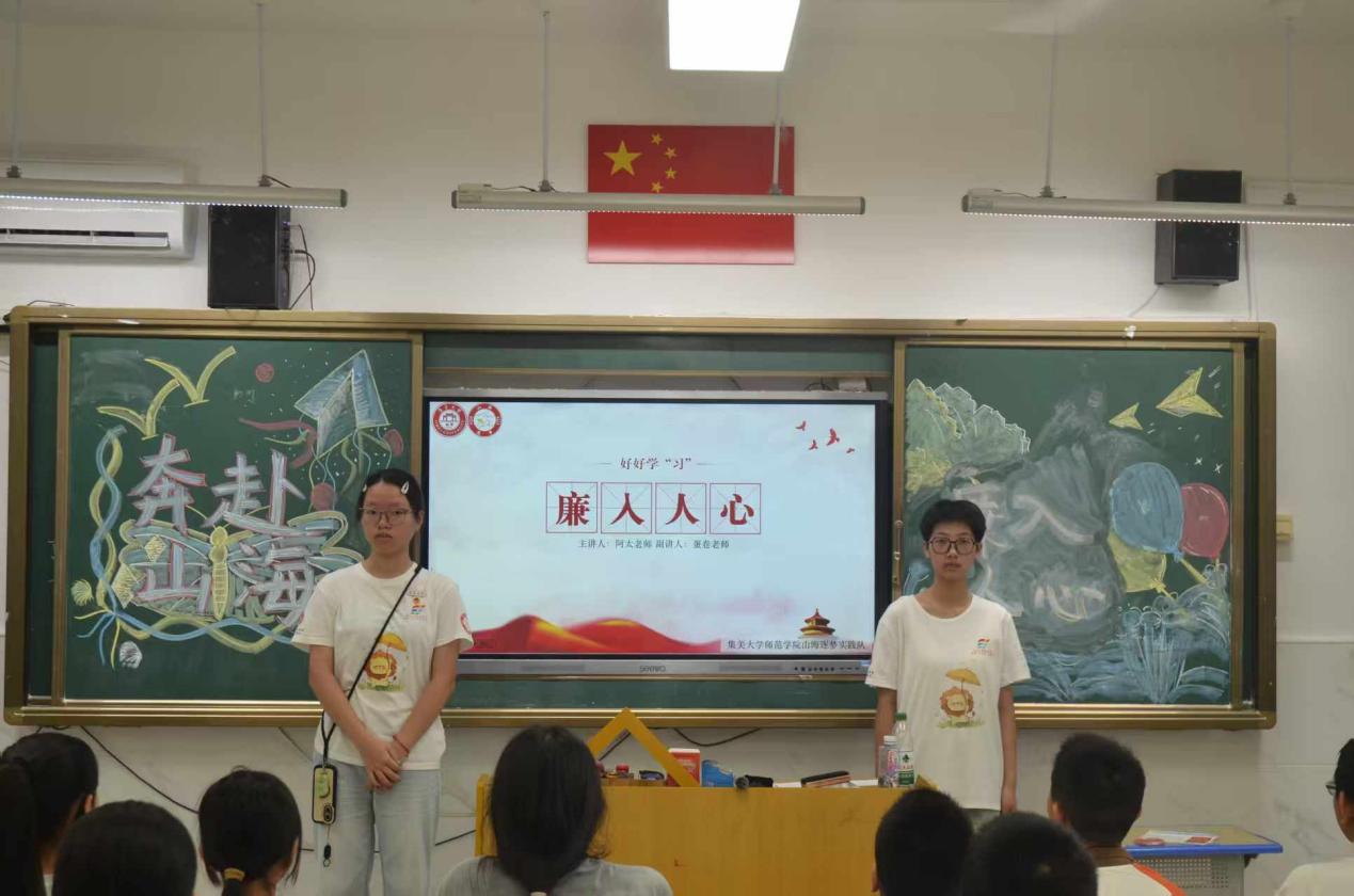 為深入學(xué)習(xí)貫徹習(xí)近平新時代中國特色社會主義思想,感悟中國共產(chǎn)黨的創(chuàng)新理論魅力,集美大學(xué)師范學(xué)院“山海逐夢”實(shí)踐隊(duì)以“理論講解、案例剖析、實(shí)踐體驗(yàn)”為抓手開展了“好好學(xué)‘習(xí)’”系列課程。實(shí)踐隊(duì)通過主題課程向?qū)幍率芯哦兼?zhèn)的學(xué)生傳遞了習(xí)近平總書記在寧德的相關(guān)理念精神、脫貧攻堅(jiān)故事、廉潔文化及鄉(xiāng)村振興智慧,讓“習(xí)”精神在學(xué)生們心中生根發(fā)芽,傳承紅色基因,激發(fā)愛黨愛國愛鄉(xiāng)情懷,為他們的成長注入了積極向上的力量。