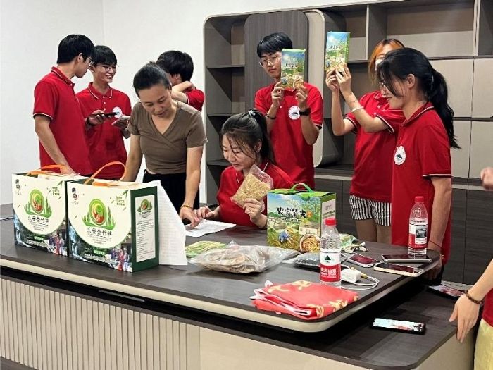 立足民族地區(qū)產(chǎn)業(yè)需求,實(shí)踐隊(duì)特別增設(shè)“AI+直播帶貨”實(shí)踐教學(xué)環(huán)節(jié)。隊(duì)員現(xiàn)場演示AI美顏濾鏡、實(shí)時(shí)字幕生成等工具應(yīng)用,有效解決中老年農(nóng)戶“上鏡緊張”、“方言溝通障礙”等實(shí)際問題。通過AI語音轉(zhuǎn)換系統(tǒng),方言推介畬族藍(lán)莓、竹筍等特色農(nóng)產(chǎn)品,讓圍觀村民直觀感受到“科技+鄉(xiāng)土”融合的獨(dú)特魅力。