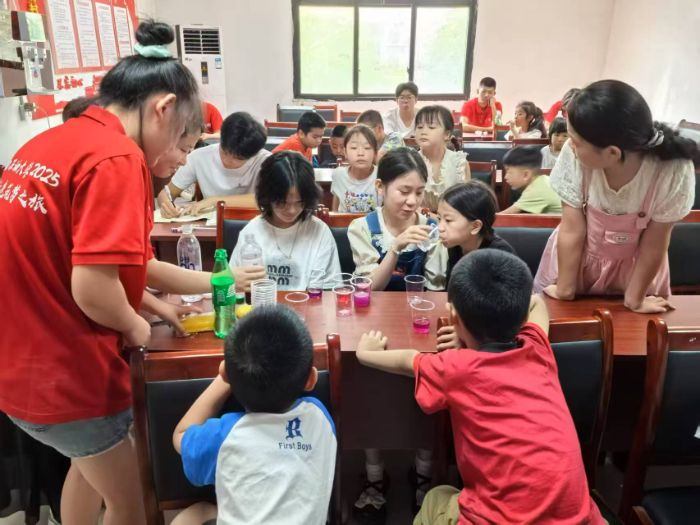 在隨后的幾天里,隊(duì)員們精心準(zhǔn)備了形式多樣的課程。語文課堂上,隊(duì)員通過生動的故事講解古詩詞,讓孩子們領(lǐng)略到中華傳統(tǒng)文化的魅力;數(shù)學(xué)課堂中,借助趣味數(shù)學(xué)游戲,引導(dǎo)孩子們積極思考、主動探索,激發(fā)對數(shù)學(xué)的興趣;科學(xué)課上,簡單易操作的小實(shí)驗(yàn),如 “會跳舞的鹽”“變色的液體” 等,讓孩子們近距離感受科學(xué)的神奇,點(diǎn)燃了他們心中探索科學(xué)的火種。
