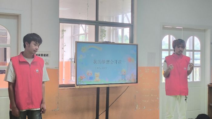 為助力鄉(xiāng)村兒童樹立遠大理想,志愿者們同步開展"我的夢想會開花"主題實踐活動。通過"我的夢想會開花"等環(huán)節(jié),引導(dǎo)孩子們結(jié)合自身認知描繪未來職業(yè)藍圖。活動中,孩子們充分發(fā)揮想象力,并踴躍分享自己的職業(yè)理想。