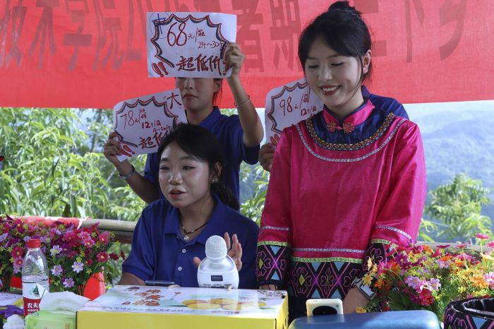 在走訪中,村黨支部書記、村委會(huì)主任扶江仕向志愿者們道出了當(dāng)前面臨的困境:“受今年異常氣候影響,加上傳統(tǒng)宣傳渠道乏力,黃桃面臨滯銷風(fēng)險(xiǎn),農(nóng)民增收壓力巨大。”扶書記的憂慮深深觸動(dòng)了志愿者們。在后續(xù)深入調(diào)研中,團(tuán)隊(duì)敏銳地發(fā)現(xiàn)當(dāng)?shù)厮N售模式較為單一,缺乏現(xiàn)代電商渠道,這恰恰為青年學(xué)子施展才華提供了契機(jī)。志愿者們迅速行動(dòng),精心策劃了“果園實(shí)地探訪+線上直播帶貨”的創(chuàng)新推廣方案,重點(diǎn)推介當(dāng)?shù)靥厣a(chǎn)品——石桶寨錦繡黃桃。
