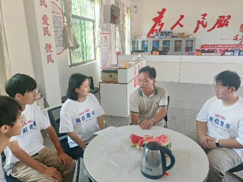 這份崇敬化作追尋動(dòng)力,實(shí)踐隊(duì)走進(jìn)康都會(huì)議紀(jì)念館。泛黃史料與斑駁文物勾勒出中央蘇區(qū)反“圍剿”的烽火歲月,隊(duì)員們重溫毛澤東、朱德等革命家指揮作戰(zhàn)的歷程,探訪毛澤東舊居與蘇維埃政府舊址,重溫入黨誓詞,誓言照亮傳承之路。在康都村,村支書用鄉(xiāng)音講述“紅色資源+綠色產(chǎn)業(yè)”的振興路(圖4);隊(duì)員們走訪甲魚基地,見證自動(dòng)化與傳統(tǒng)工藝的融合;與耄耋老人圍坐,紅軍與村民魚水情深的往事愈發(fā)清晰。