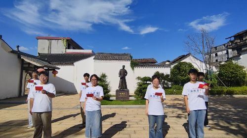 (圖1)參觀趙醒儂烈士紀(jì)念館 (圖2)在趙醒儂烈士紀(jì)念館誦讀
