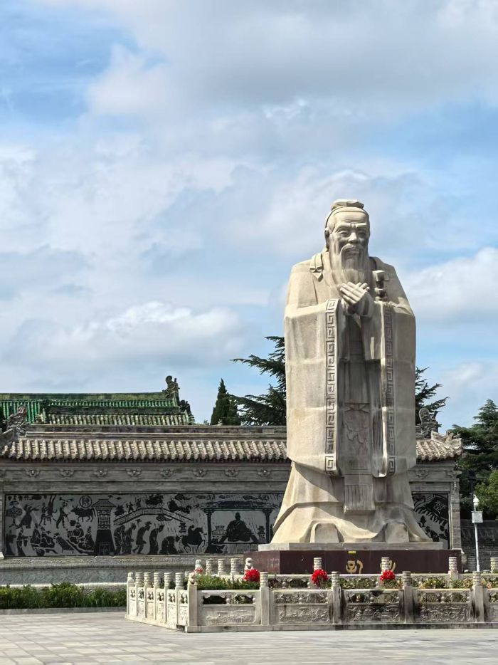 (左圖為淮陽弦歌臺孔子雕像 詹琛攝)