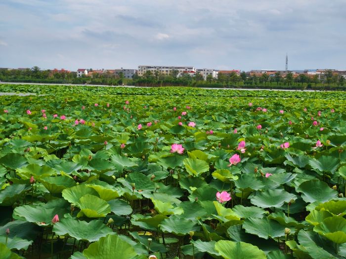 (圖為淮陽龍湖萬里荷花盛開之景牛占原攝)