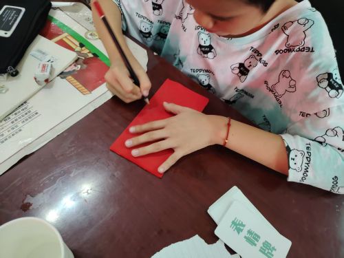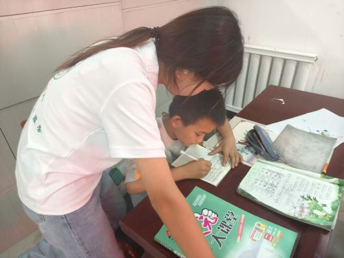 上午,實踐團成員化身“知識引路人”,針對孩子們暑期作業(yè)的重難點展開輔導(dǎo)。在數(shù)學(xué)輔導(dǎo)中,成員用“分西瓜”的生活場景,拆解分數(shù)運算難題,讓抽象數(shù)字變得直觀易懂;語文課堂里,引導(dǎo)孩子把花橋新村的植物見聞融入作文,讓文字有了“泥土氣”和“生活味” ;英語學(xué)習(xí)時,通過“植物英文命名大挑戰(zhàn)”,激發(fā)孩子單詞記憶熱情。輔導(dǎo)過程中,成員們針對不同孩子的學(xué)習(xí)節(jié)奏,定制專屬解題路徑,從糾正書寫習(xí)慣到梳理知識框架,一步步幫孩子找回學(xué)習(xí)自信,不少孩子主動提問的次數(shù)明顯增多,求知欲持續(xù)升溫。