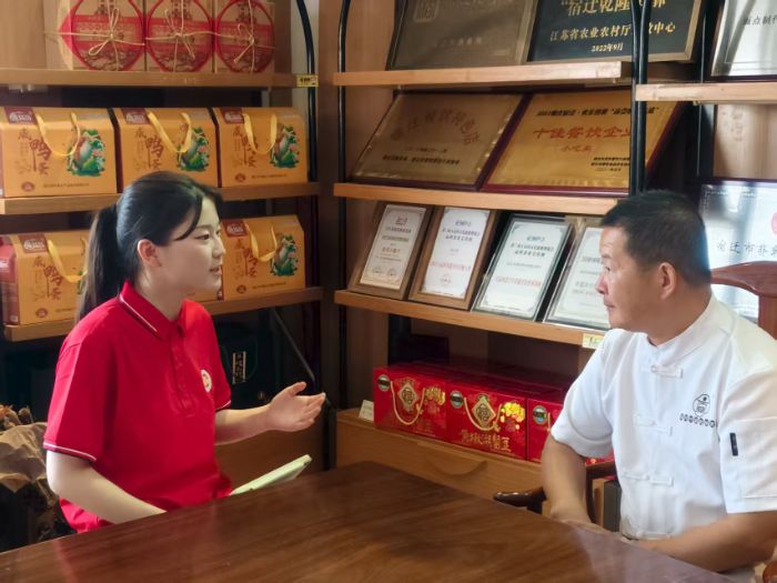 新一鍋貢酥又出爐了,另外還有新產品“皂河小脆子”推出。成員們就當下爆火的“蘇超”比賽,也向劉老師展示了衍生的周邊產品。劉老師表示,他從隊員們的分享中汲取了新的靈感,將來也會與不同的活動、賽事進行聯(lián)動,在宿遷市各級政府的大力支持下,進一步給傳統(tǒng)非遺制作技藝注入新時代的活力。