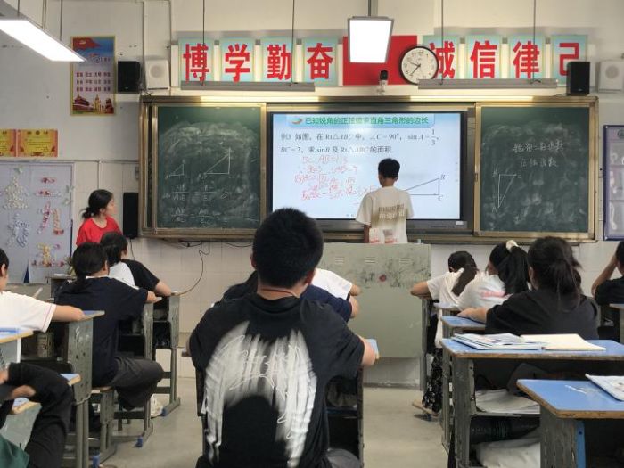 作為“數(shù)映紅途”團隊的一員,唐單倩的授課不僅是知識的傳遞,更是教育理念的實踐。她巧妙融合勾股定理、相似三角形等舊知,幫助學生構建知識網(wǎng)絡;通過當堂練習即時反饋,強化運算能力;更以“一題多解”啟發(fā)批判性思維。課程尾聲,學生們已能靈活運用sinα解決復雜情境下的三角形周長、面積問題,展現(xiàn)出數(shù)學建模的初步素養(yǎng)。
