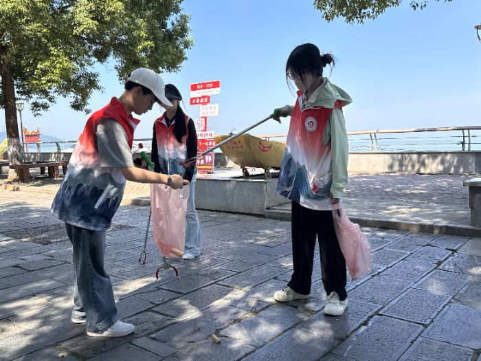在追溯淮軍文化的同時,實踐團成員們也將目光投向了姥山島的生態(tài)環(huán)境。為了還灘涂一片潔凈,實踐團成員們開展了凈灘環(huán)境“煥新顏”。他們手持垃圾夾,沿著灘涂仔細搜尋,將散落在各處的垃圾一一撿起。盡管烈日炎炎,但成員們沒有絲毫退縮,用實際行動踐行著環(huán)保理念。經(jīng)過不懈努力,灘涂的面貌煥然一新,重新煥發(fā)出勃勃生機。這場凈灘行動,不僅是對環(huán)境的清掃,更是用青春力量踐行環(huán)保承諾的生動注腳。