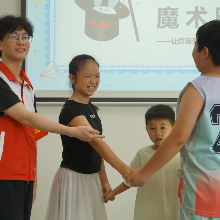為推進(jìn)“百千萬工程”走深走實(shí),激發(fā)基層兒童科學(xué)興趣,2025年7月15日,華南師范大學(xué)物理學(xué)院四進(jìn)永和服務(wù)隊(duì)成員楊李浩走進(jìn)廣州市黃埔區(qū)永和社工服務(wù)站,開展以《人體導(dǎo)電燈泡》為主題的電學(xué)互動(dòng)課堂。