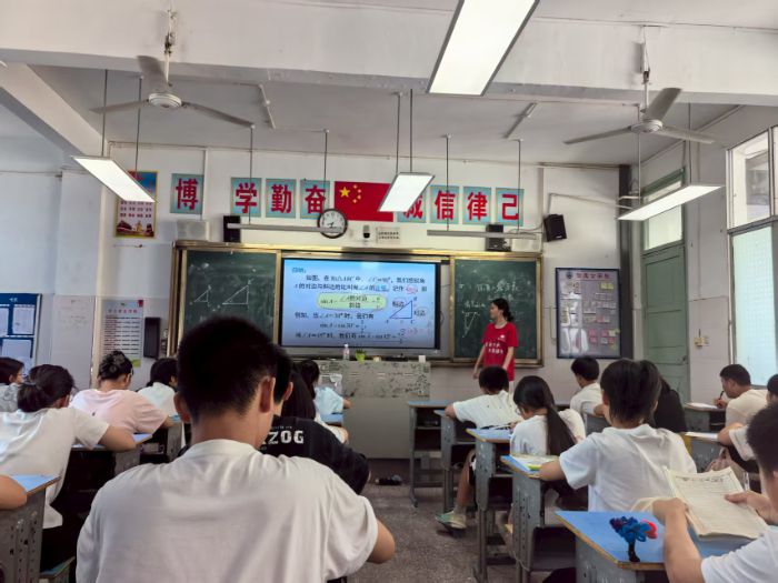 在數(shù)學(xué)課堂上,一把尋常的三角尺正悄然揭開數(shù)學(xué)宇宙的神秘樂章。唐單倩老師以"銳角三角函數(shù)——正弦值"為主題,帶領(lǐng)學(xué)生踏上一場從直觀感受到嚴(yán)謹(jǐn)推理的思維探險(xiǎn)。在向素妍老師以及由鄧婕、鄒燁、張煦涵老師組成的聽課組的共同關(guān)注下,抽象的數(shù)學(xué)符號在課堂中煥發(fā)出躍動(dòng)的生命力。