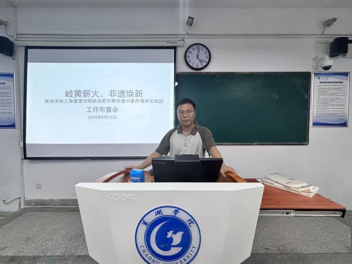 為明確工作安排,進(jìn)行工作動(dòng)員,為后續(xù)赴合肥開展調(diào)研工作做好準(zhǔn)備,岐黃薪火,非遺煥新——巢湖學(xué)院工商管理學(xué)院赴合肥開展調(diào)研實(shí)踐團(tuán)于6月24日下午四點(diǎn)半在博學(xué)樓511召開工作布置會(huì)。會(huì)議由指導(dǎo)老師葛曉龍主持,團(tuán)隊(duì)全體成員參會(huì)。