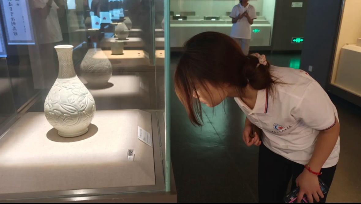 移步“漢唐風(fēng)韻”展區(qū),青銅禮器與青瓷珍品閃耀著盛世光芒。一柄漢代青銅劍歷經(jīng)千年仍寒氣逼人,劍身的菱形暗紋與錯(cuò)金銘文,既彰顯著爐火純青的鑄造工藝,更見證了開州作為古代軍事要塞與商貿(mào)樞紐的重要地位。當(dāng)講解員講述其背后的戍邊故事時(shí),同學(xué)們仿佛穿越到金戈鐵馬的歲月,在歷史回響中觸摸漢唐風(fēng)華。