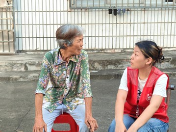 圖為服務(wù)臺(tái)成員于村民奶奶了解情況 (羅一帆供圖)