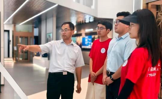 企業(yè)負(fù)責(zé)人帶領(lǐng)師生參觀展廳。周凱杰供圖