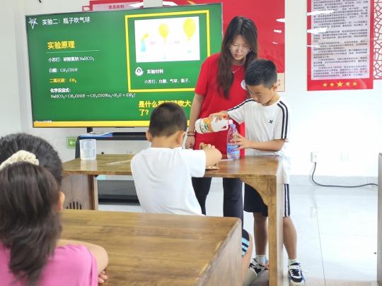 志愿者指導(dǎo)小朋友做實(shí)驗(yàn)。李沛儒供圖