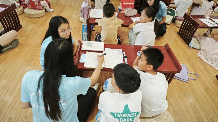 教室里靜悄悄的,孩子們專注答題,遇到困惑時舉手請教,實踐團成員就立刻俯身耐心講解,一步步幫他們攻克薄弱環(huán)節(jié)。這樣的自習不再是盲目刷題,而是一場精準提升的高效學習之旅。