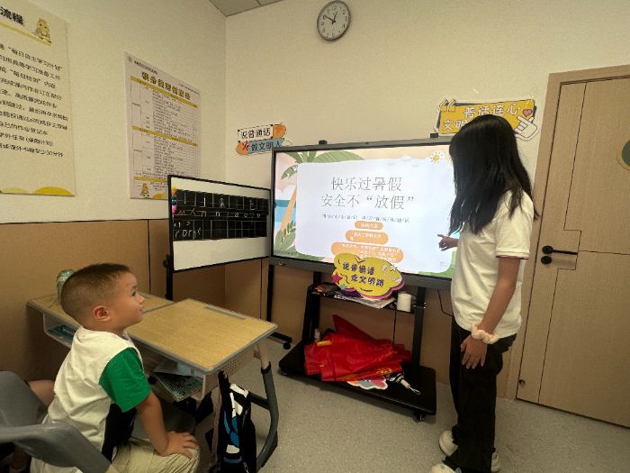 活動當(dāng)天,實(shí)踐團(tuán)成員與志愿者通過播放趣味動畫短片、講述生動故事等輕松形式,迅速吸引了孩子們的注意力。他們用淺顯易懂的語言,深入淺出地向孩子們講解了普通話在日常交流和學(xué)習(xí)中的重要性,幫助孩子們在愉快的氛圍中認(rèn)識到說好普通話的意義。