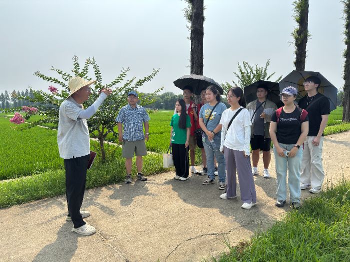 下午,帶著對(duì)“生態(tài)筑基”的初步認(rèn)知,實(shí)踐團(tuán)奔赴南京農(nóng)業(yè)大學(xué)白馬教學(xué)科研基地。在田間,隊(duì)員們實(shí)地考察了不同氮肥濃度處理區(qū),行走田埂,仔細(xì)觀察水稻的株高、葉色、分蘗數(shù)等指標(biāo),切身感受精準(zhǔn)施肥對(duì)作物生長(zhǎng)與養(yǎng)分利用效率的影響。縱橫的溝渠、科學(xué)的作物布局,構(gòu)成了一幅生動(dòng)的生態(tài)農(nóng)業(yè)實(shí)踐圖景。從邊界效應(yīng)的觀察到優(yōu)化施肥的智慧,生態(tài)化田間管理的理念深入隊(duì)員心中。烈日下的學(xué)習(xí),讓隊(duì)員們深刻體悟到“俯首深耕”對(duì)于夯實(shí)農(nóng)業(yè)生態(tài)根基的意義,為后續(xù)深入產(chǎn)業(yè)一線奠定了堅(jiān)實(shí)基礎(chǔ)。