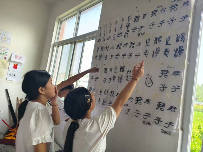 君子”作品整齊排布,墨香混著宣紙的氣息漫散開來。相信他們對君子的理解,正隨著筆墨的暈染,一點點滲入心里。