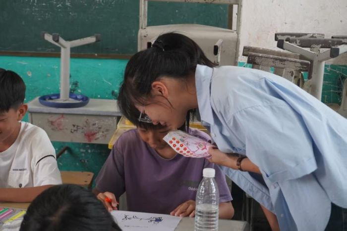 夕陽西下,藝術(shù)展在孩子們的戀戀不舍中落幕。他們將作品仔細收好,有的把粘土章魚塞進書包,有的將書法作品送給老師,還有人把紙飛機別在教室的窗臺上。支教隊員們看著這些承載著童心的作品,仿佛看到了一顆顆正在萌芽的藝術(shù)種子。