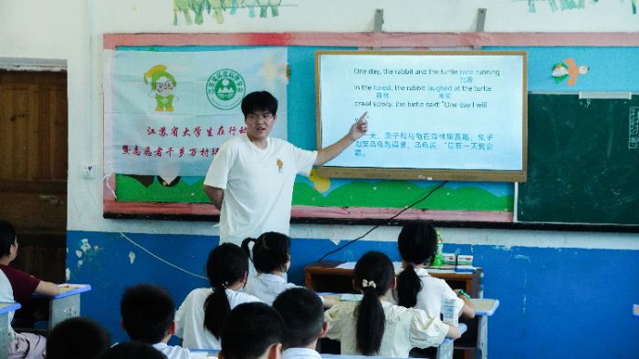 當(dāng)日課程中,英語(yǔ)教學(xué)扎實(shí)推進(jìn)。支教團(tuán)成員盧子浩在英語(yǔ)課上,以學(xué)生熟悉的《龜兔賽跑》寓言故事為載體,引導(dǎo)學(xué)生快速適應(yīng)英語(yǔ)版本,并融入新詞教學(xué),實(shí)現(xiàn)趣味與知識(shí)的結(jié)合。支教團(tuán)成員侯卓嵐則延續(xù)詞性教學(xué),聚焦情態(tài)動(dòng)詞與形容詞,通過生活情景模擬對(duì)話及句子填空練習(xí),幫助學(xué)生鞏固所學(xué),夯實(shí)語(yǔ)言基礎(chǔ)。