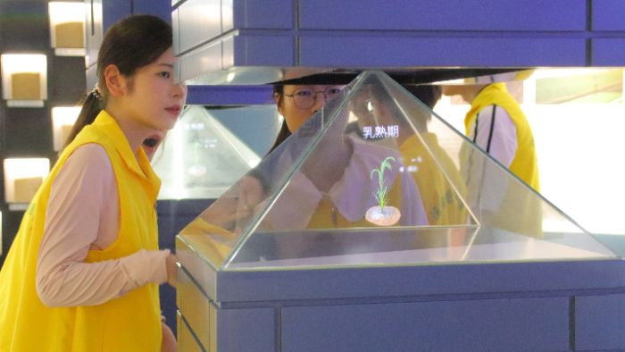 實(shí)踐團(tuán)首站來到湖熟稻米文化館。這座以“傳承稻作文化,賦能產(chǎn)業(yè)振興”為宗旨的場館,通過科技互動(dòng)、場景復(fù)原與實(shí)物展示相結(jié)合的方式,系統(tǒng)呈現(xiàn)了湖熟地區(qū)從新石器時(shí)代至今的稻作文明發(fā)展脈絡(luò)。