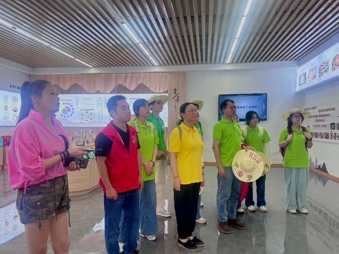 展廳內(nèi)擺放著各種茯苓初加工產(chǎn)品,如茯苓丁、茯神、茯苓卷、茯苓個(gè)、茯苓皮、赤茯苓等,基地負(fù)責(zé)人向?qū)嵺`隊(duì)員們一一介紹了它們的藥用價(jià)值。指導(dǎo)老師陳湜向?qū)嵺`隊(duì)員們介紹道,“茯苓從古至今在中醫(yī)藥領(lǐng)域應(yīng)用廣泛,不僅有‘利水滲濕、健脾寧心’的功效,現(xiàn)代研究還表明其富含多糖、三萜類化合物等活性成分,有助于增強(qiáng)免疫力、抗氧化及調(diào)節(jié)血脂。”此外,觀看茯苓傳統(tǒng)文化價(jià)值視頻讓實(shí)踐隊(duì)員們對(duì)茯苓有了更加深入的認(rèn)識(shí)和理解。
