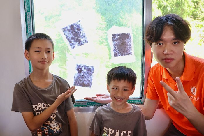 圖為團隊成員帶領孩子們制作種子紙 郭佳晨攝。